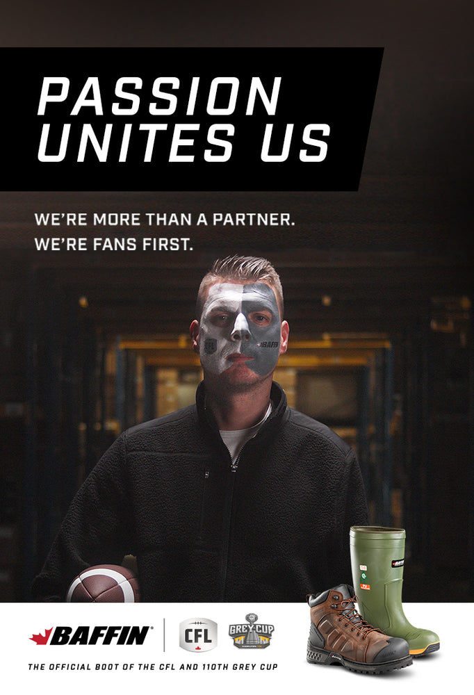 Baffin is proud to be the Official Boot of the Canadian Football League (CFL) and the Grey Cup.